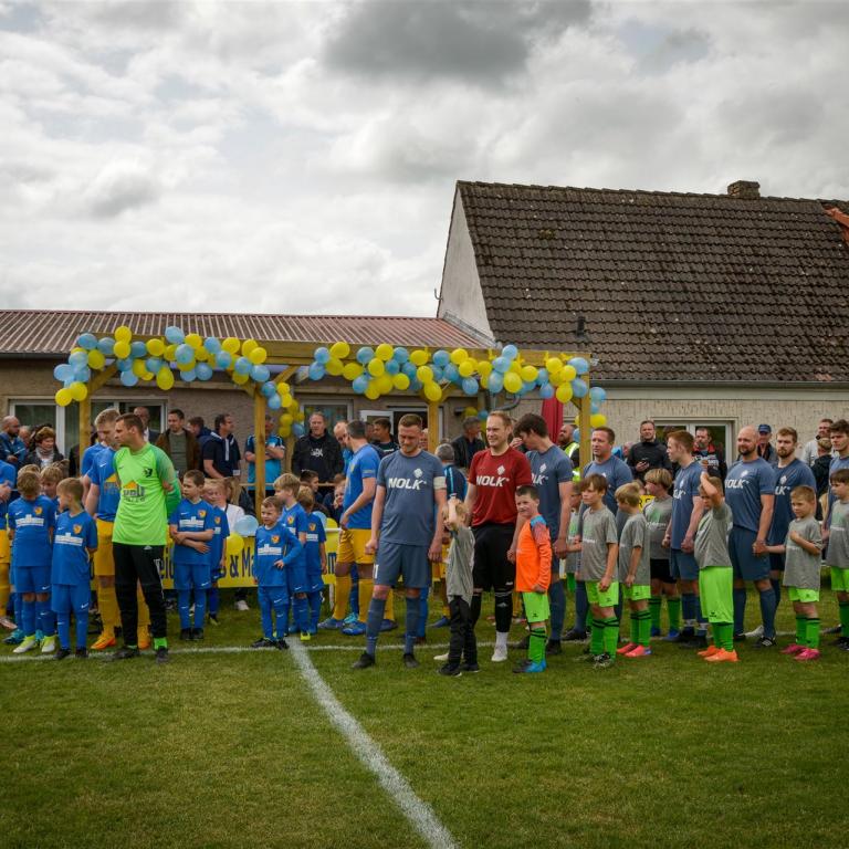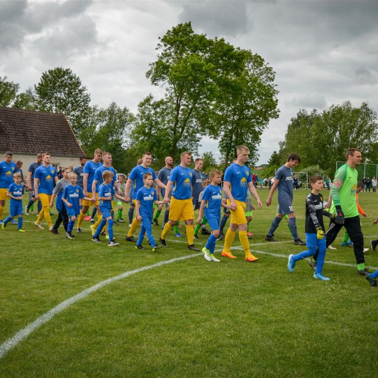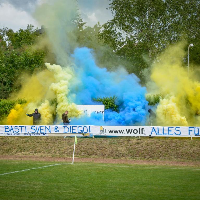 Es war Derbyzeit auf dem Brüeler Sportplatz. Am vergangenen Sonntag bestritt der Brüeler Sportverein sein letztes Heimspiel in der aktuellen Landesklassen-Saison. Zu Gast war der FC Aufbau Sternberg. Ein Spiel was vom Datum her nicht besser hätte fallen können. Nicht nur das Wetter zeigte sich von seiner Guten Seite, es war zugleich auch der Startschuss in die 800 Jahre Festwoche der Stadt Brüel. Gefühlt war die halbe Stadt mobilisiert. 350 Zuschauer wollten sich das Altkreisderby nicht entgehen lassen, dass ist Saisonrekord und bereits vor dem Anpfiff glich das Gebiet um den Sportplatz einer Invasion. Sportlich ging es für beide Mannschaften zwar um nicht allzu viel, aber es spielte jede Menge Prestige in diesem Duell mit sich. Schon beim Auflaufen beider Mannschaften wurde jedem Fan deutlich, welche Bedeutung diese Partie mit sich trug. Beide Teams liefen mit den Bambinis ihrer Vereine, unter der Musik von „Two Steps From Hell – Heart of Courage“ auf das Feld, zeitgleich entzündeten sich 8 Rauchtöpfe in Blau-Gelber Farbe und 4 Bengalische Fackeln, was bei Spielern und Zuschauern für einen ersten Gänsehaut-Moment sorgte.